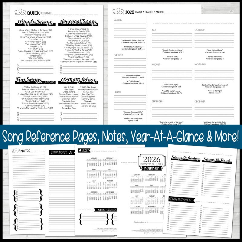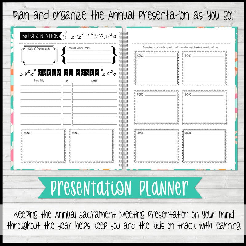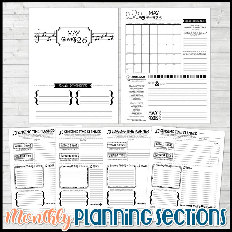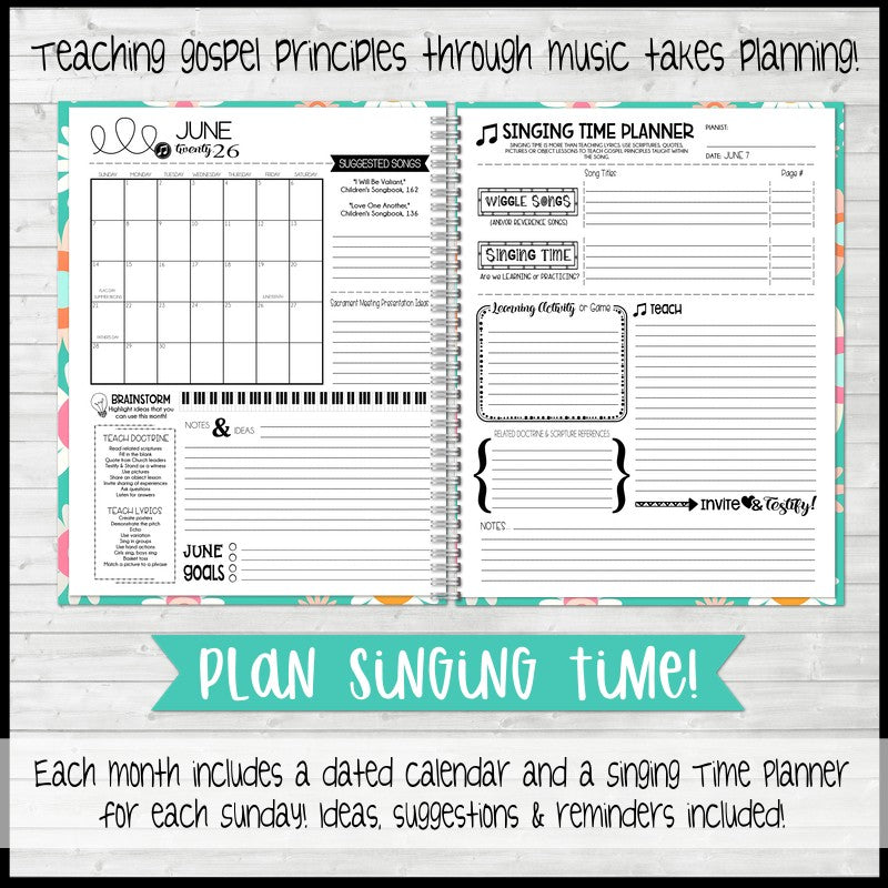 Singing Time in Primary isn't just teaching lyrics anymore, it's now centered on teaching gospel principles through music! My guided prompts and planning spaces will help you make plans, record ideas and keep your thoughts organized and ready to go each week. This planner now includes covers for BOTH the Music Leader and the Pianist! Working and song planning together will help Singing Time go much more smoothly!