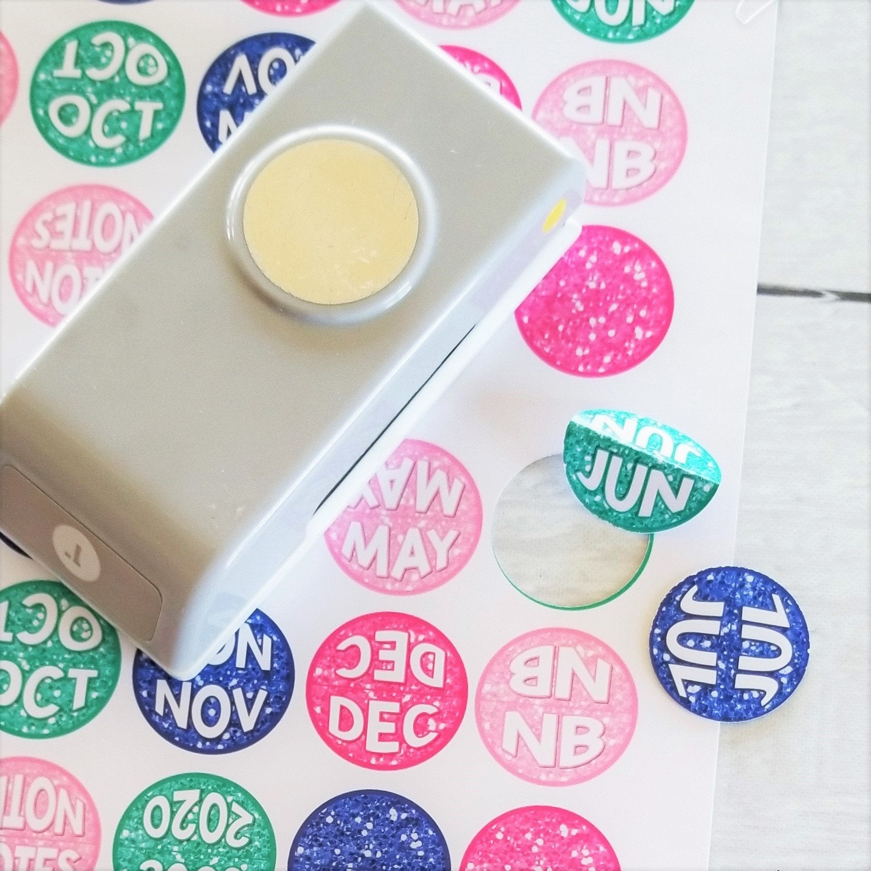 APPLYING THE STICKER TABS: This set of planner tabs is optional. For best results, print on full-size white sticker (or label) paper found at any copy/office store. Trim or punch with 1" circle then fold in half, peel the sticker back and apply tabs in a staggered fashion on the right side of the corresponding pages. Following the same application instructions... you may choose to simply print on white card stock, punch, crease/fold and adhere with a staple.