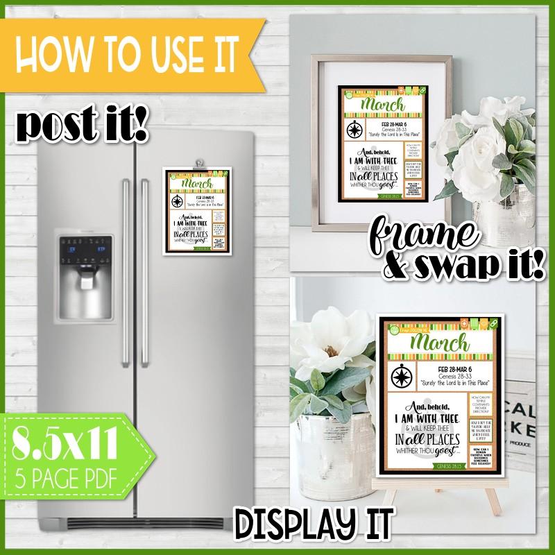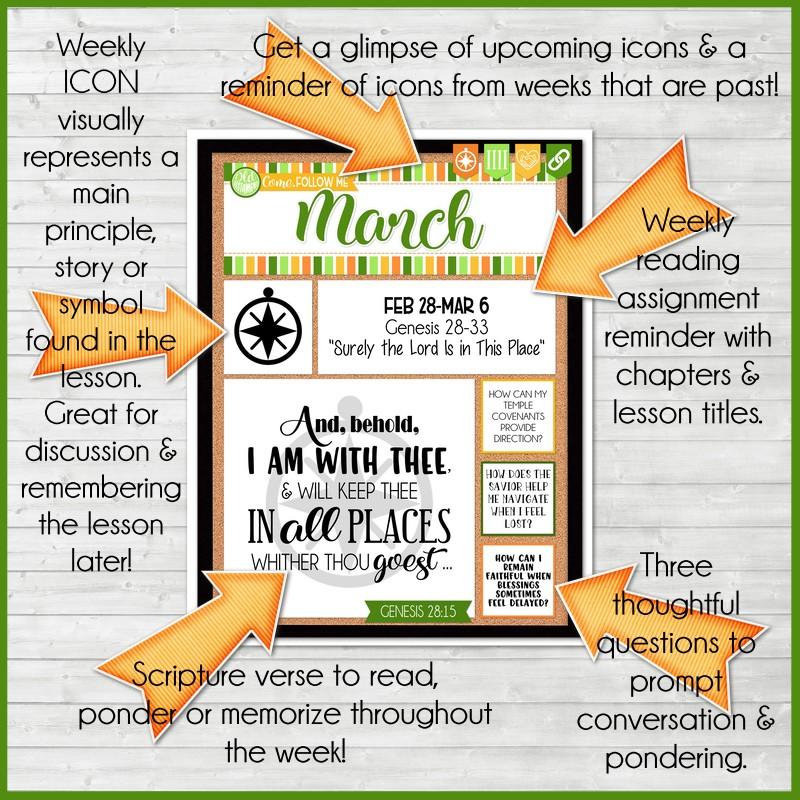 If you are looking for a fun, visual way to display and remember Come, Follow Me each week - look no further! My WEEKLY "faux" bulletin board pages are a quick, easy and informative way to keep your family on track with the reading schedule... and with a special weekly icon, a verse highlight and 3 thoughtful questions - it can also help jump start your family discussion! I call it "faux" because it's designed to LOOK like a bulletin board, but all you have to do is print and display!