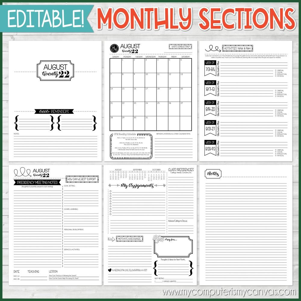 2022 YW Presidency Planner PRINTABLE (EDITABLE)