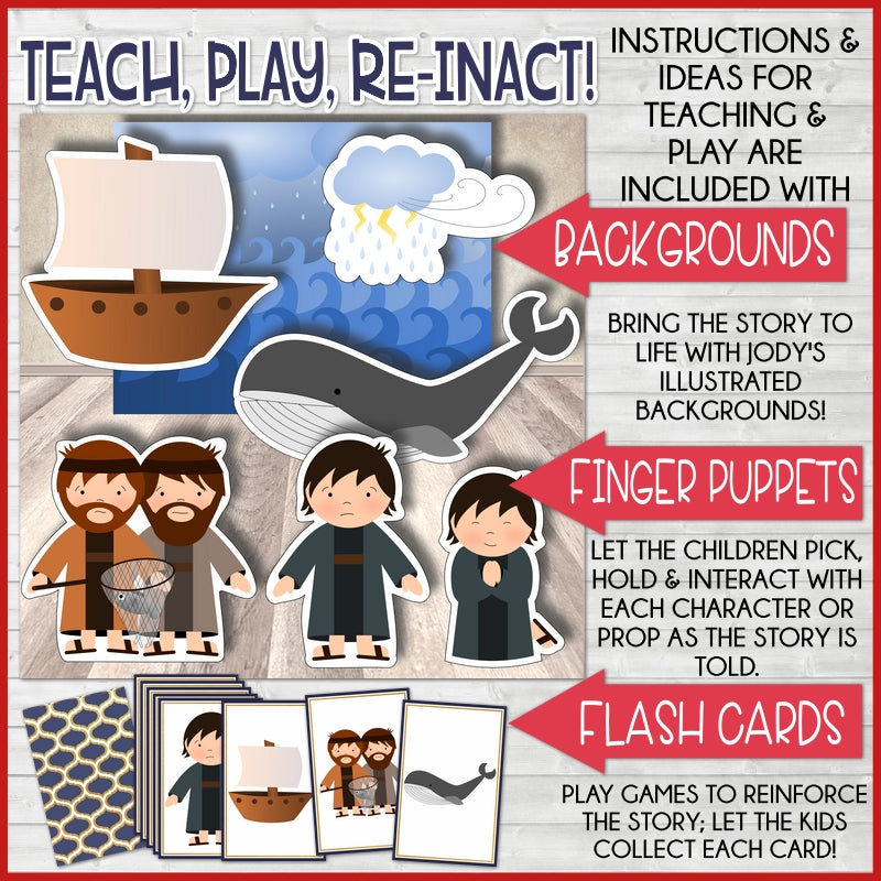 INCLUDED IN THIS LISTING: You will receive multiple PDF's (28 pages total) that contain characters (as finger puppets or flashcards), props, story telling backgrounds, coloring pages, and story cards/legends. Please view the slideshow of graphics to see the full breadth of this awesome collection!
