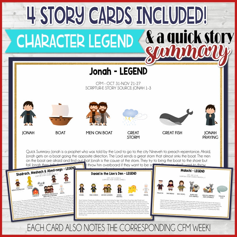 Are you looking for fun, creative ways to teach and bring Old Testament stories to life as you follow the 2022 Come Follow Me reading schedule with your family or Primary Class? Our cute characters, props and backgrounds will help you teach and re-tell these important stories! Each kit INCLUDES a coloring page and a story card with a character legend to help you teach/tell the story in a simple way.