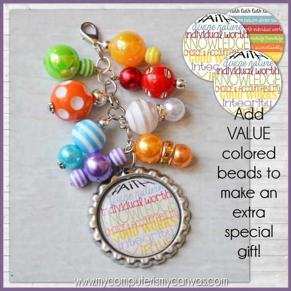 Looking for a fun, colorful gift or favor for your Young Women? These 1" round YW VALUE images are perfect for making inexpensive necklaces, key chains, zipper pulls & more! A completed pennant also makes a great gift or favor... but these images can also be used for card making, scrapbooking, jewelry making, various camp/activity crafts, glass or resin pennants, magnets and tons more!