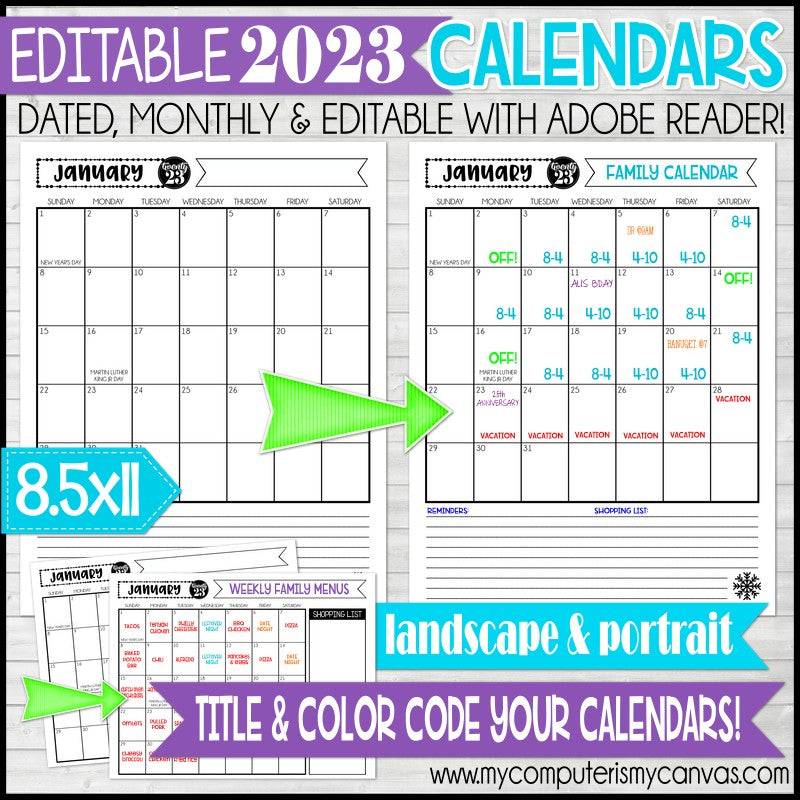 NEW FOR 2023!! Need a calendar to manage a specific aspect of your life for 2023? From meal plans to work schedules, family activities, teaching schedules, side hustle projects and more! The sky is the limit... with the ability to add your own text AND color code, you'll be set for a more organized year! Use as planner inserts, at your desk or just post on your fridge!