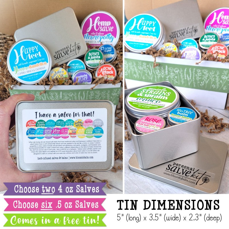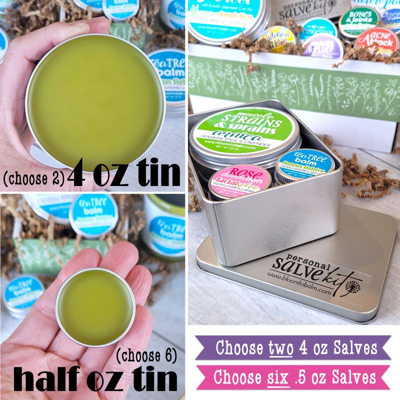The personal salve kits are the perfect way to get started. I must say it was very hard to choose which ones I wanted to include in my kit. Ultimately I settled with
