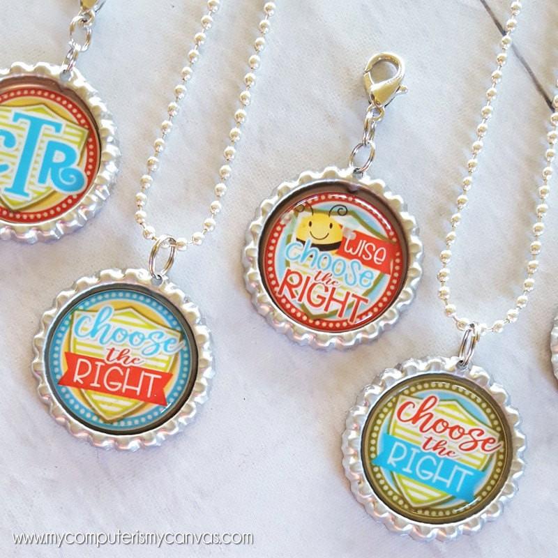 Looking for a fun way to introduce the 2017 Primary Theme, "Choose the Right"? These bottle cap images are perfect for making zipper pulls for scripture bags, inexpensive necklaces, key chains & more! Also great for Activity Day crafts or birthday gifts! These images can also be used for card making, scrapbooking, jewelry making, various camp/activity crafts, glass or resin pennants, magnets and tons more!
