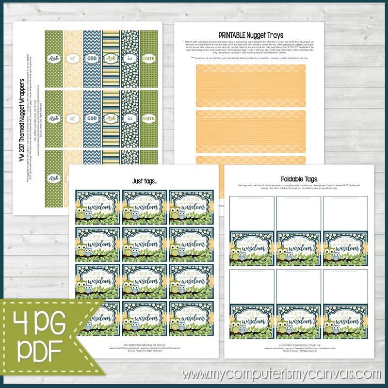 This listing includes a 4 page, high resolution PDF printable file. The first page contains assorted wrappers, perfectly sized for wrapping Hersh... brand chocolate nuggets. On page two you'll find printable trays. Page 3 is full of "foldable" tags and Page 4 has plain tags that can be used for any gift or treat! (See Image #3 to view included pages).