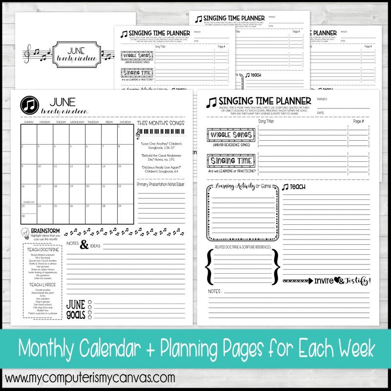 ✔ Weekly Singing Time Planning Page, one per week