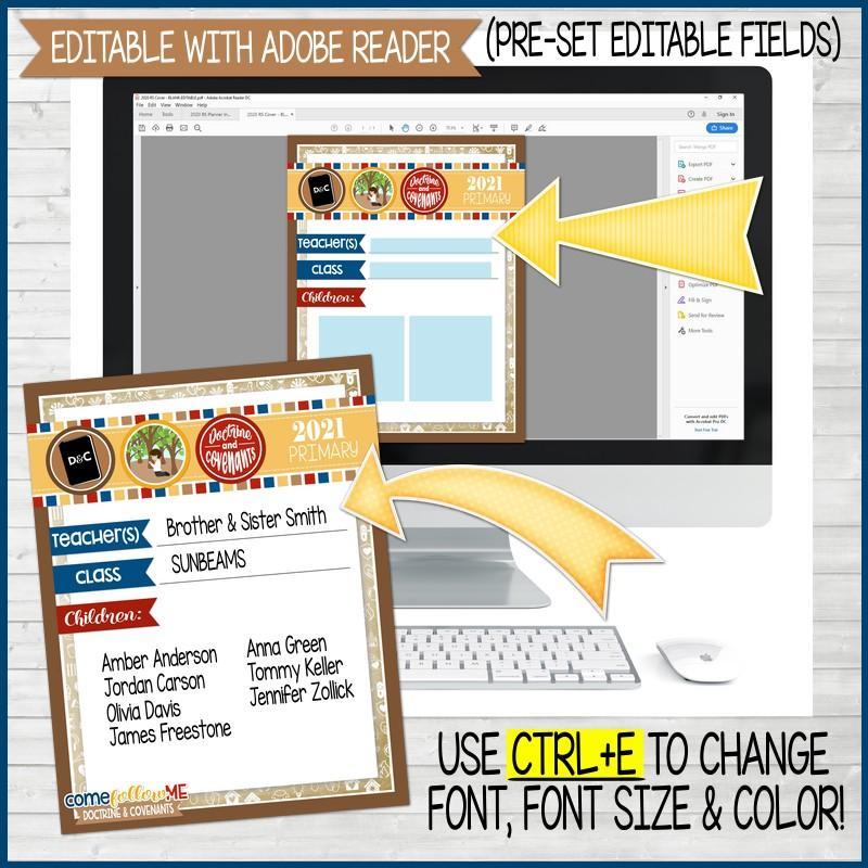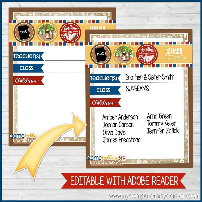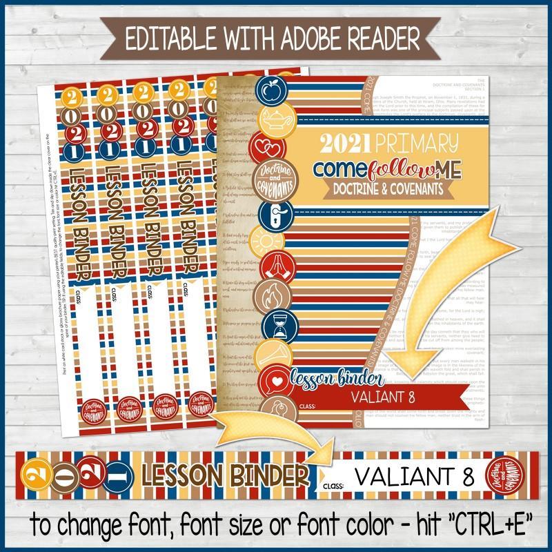 This is one of my favorite kits for Primary! Designed with the 2021 Come Follow Me DOCTRINE and COVENEANTS theme in mind... it includes door signs, binder covers (for lesson binders and presidency binders), binder spines and both assignment cards and assignment wristbands! Plus, all are EDITABLE! Pre-set fields have been added so just tab through, add your text and print!