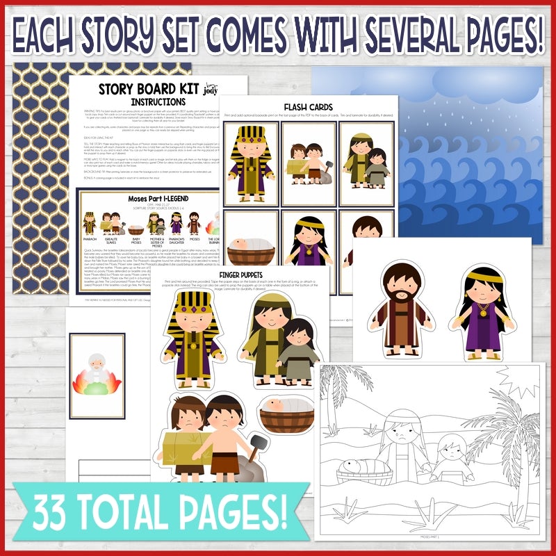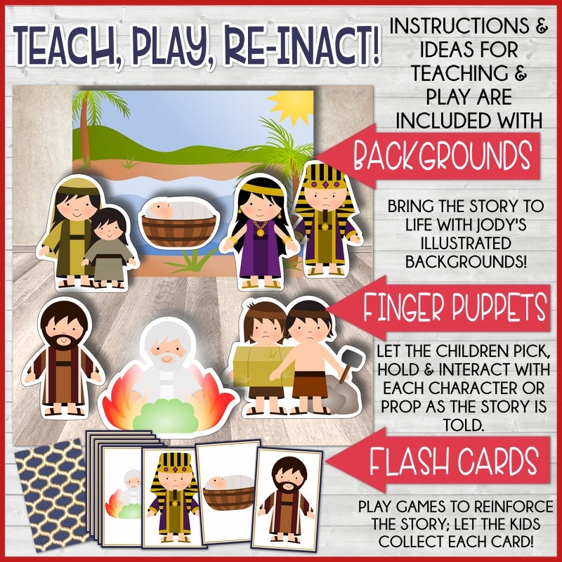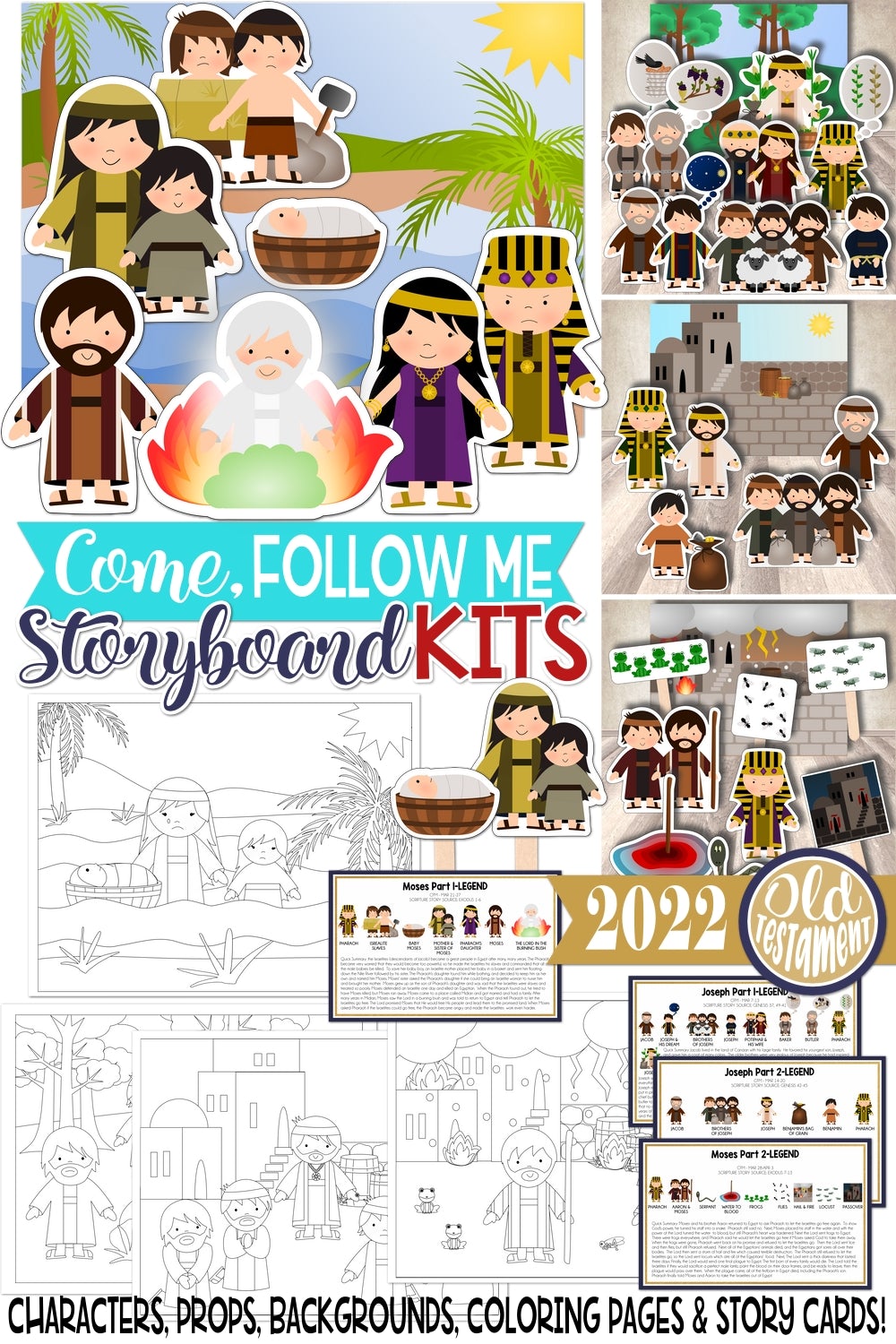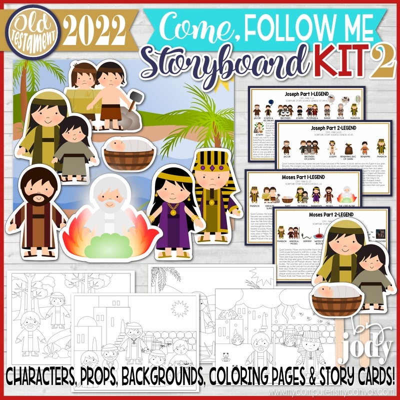 Are you looking for fun, creative ways to teach and bring Old Testament stories to life as you follow the 2022 Come Follow Me reading schedule with your family or Primary Class? Our cute characters, props and backgrounds will help you teach and re-tell these important stories! Each kit INCLUDES a coloring page and a story card with a character legend to help you teach/tell the story in a simple way.
