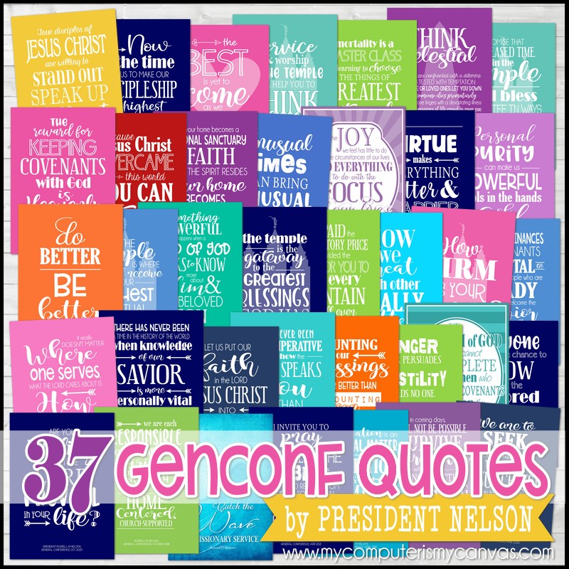 I had the quotes printed at Walgreens and put them in a Dollar Store Mini Album, now I can be reminded of President Nelsons challenges anytime I want. Thanks for your amazing work, I love the quotes that you do each conference. I have some clear acrylic frames on the side of my fridge and we post them after each conference and can review them easily anytime.