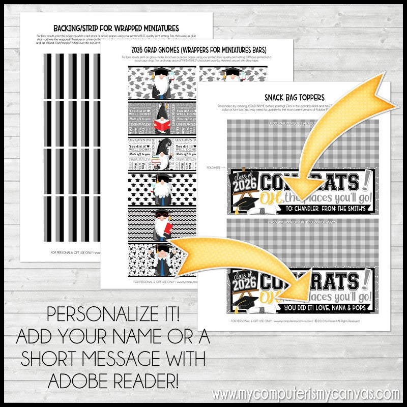 Gnome MINIATURE BAR WRAPS {2026 GRADUATION} PRINTABLE