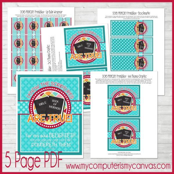 Primary Leaders are always on the lookout for easy, inexpensive gifts and favors for their Primary Children... as well as handouts and gifts to reinforce the theme throughout the year. This collection of printables, designed to coordinate with the "I Know the Scriptures are True" Theme (2 Nephi 4:15), will meet many of those needs!