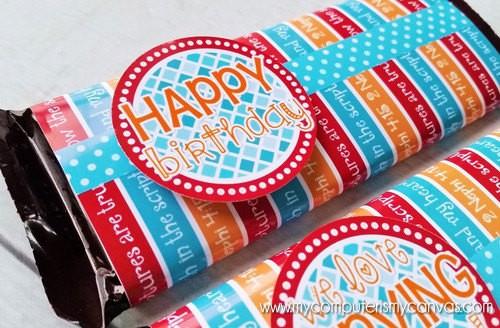PRINTING/ASSEMBLY TIPS: Print on white paper or card stock (I prefer/recommend glossy brochure paper), trim and wrap around chocolate bar; secure with clear tape on the back. For best results, use your printer's BEST quality print setting. These files may also be saved to a memory device and printed at your local copy shop; not formatted for photo printing.