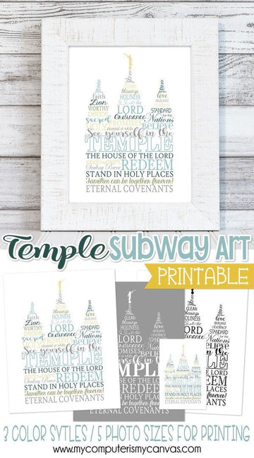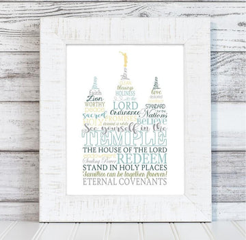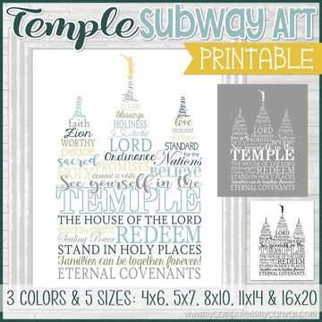 I love to see the temple! Unlike a regular temple print, this one is formed using words that describe the temple - a great focal point to have in your home. Print and frame one of the larger sizes display in your home, then print/frame the smaller ones for wedding/shower gifts, FHE or lesson handouts... great for Primary Kids and YW too!