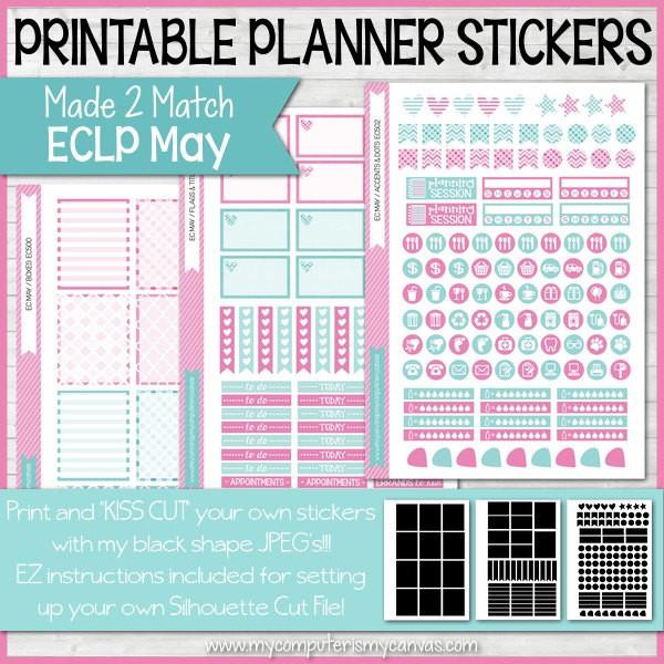This Monthly PRINTABLE Planner Sticker Kit is "Made 2 Match" the ERIN CONDREN VERTICAL Life Planner for MAY! My monthly sets are designed to give you a coordinating, but very functional, collection of stickers that you'll get efficient, but very cute, use from! And, because it's printable... you can print MORE of your favorite sheets!