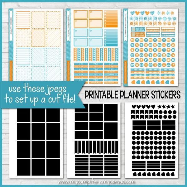 This listing comes with 6 JPEG Images -->Three are the colored sticker sheets (as shown above) and three are matching black sticker shaped sheets that will come in handy as I teach you how create your OWN Silhouette Cut File using your Silhouette Studio Software! Detailed written instructions with screen shots are included with your download and I encourage you to also watch my YouTube Tutorial as well! Just copy/paste this link into your browser to watch: https://youtu.be/RrRsx9EcGk4