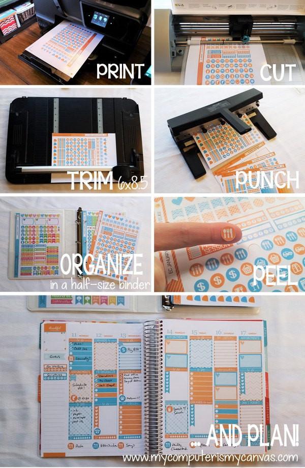 As you begin collecting sticker sets from my shop... once you run them through the Silhouette for cutting, I recommend using a paper trimmer to trim your finished sheets down to 6"x8.5" - then punch and store them in a half-sized binder! Binder printables and divider tabs coming soon!