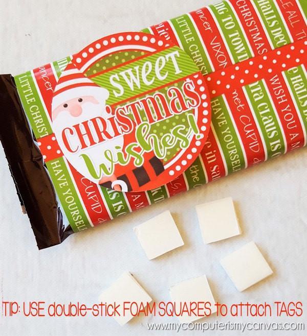 Looking for a fun Santa or Christmas treat or favor for friends, neighbors or co-workers... or a way to spread some Merry & Bright Christmas Cheer? These candy bar wrappers with gift tags might be perfect!